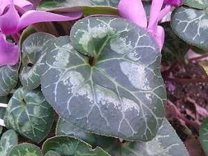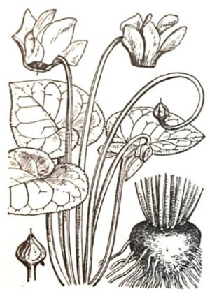 西南アジア原産の多年草で、観賞用として主に鉢植として温室に栽培される。扁球形の大きな球茎がなかば地中にうまり、頂部から長い柄をもった葉を群生する。葉は心臓形でへりにちぢれた細かいきょ歯があり、肉質で厚く無毛、表面は青緑色で脈はやや凸出し,多くは脈間に灰白色の模様があり、裏面は紫色をおびる.冬から早春にかけて太い花茎を出し、先は下垂して大形の1花を開く花冠は5片に深くさけ、裂片は長楕円形で先端は鈍く、つぼみの時はねじれて下をむいているが、開くと花柄の方へそりかえる.短かい花筒の内に5本の雄しべと1本の雌しべとがある。花後に花柄は下へ曲り、果実は球形である。