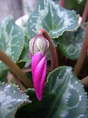 Cyclamen(シクラメン)は、ギリシャ語の「kiklos(円)」が語源。