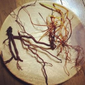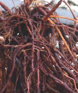 赤根 : 根から、赤い染料がとれる。「茜染め(あかねぞめ)」という。根を乾燥させると、だんだん赤くなることから、