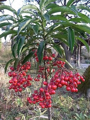 冬の場は広葉樹の葉っぱがなくなり、風景が殺風景になる中、目立つ赤は貴重で、縁起物として大切にされてきました。 (ま)