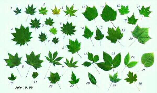 写真は日本のカエデの色々な葉の形