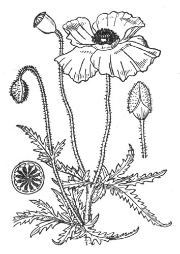 ヨーロッパ原産で徳川時代に我国に入り、観賞用として庭園によく植える。高さ50cm位で全体に粗毛がある。茎は直立して、まばらな分枝がある。葉は互生で羽状に深裂し、裂片は線状皮針形で鋭く尖り、辺はぎざぎざになっている。2個あるがく片の外画には粗毛があり、緑色で白いふちどりがある。これは楕円状舟形で花の開くにつれて先におちる。5月頃各枝の先端に4弁の花を開く。つぽみは下を向いている。花弁はほぽ円形をしているか広円形で光沢があり、長さは3~4cm位で相対する2弁は他の2弁よりも大きい。花の色は真紅が主であるけれども栽培によっていろいろに変化する。多数の雄しべをもつ。中央には倒卵形で基部がせまくなった子房がある。この長さは1.3cm位。柱頭は放射状で子房の頂上を傘のようにおおっている。