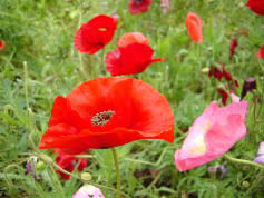 いつか荒川の土手に雑草化した雛罌粟が何キロも続くところがあった。きれいに整備され花壇たより、野生化した花の方が美しい。明るい日差しの中、赤や黄色の花がほかの雑草の中に点々とずうっと続いていた。 (M)