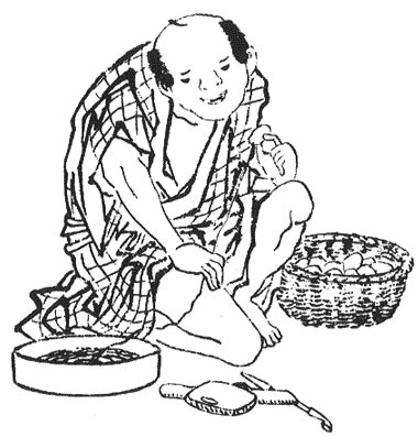 製糸法で最も原始的なのは図①のように繭から直接手で糸をひき出し、枠にも巻かずに、たぐり寄せておくだけというもので、道具とか機械とかは全く使われていません。