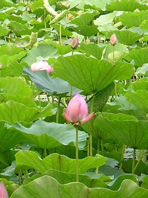 山陰にひっそりと寺と池はあった。人もちらほらである。ゆっくり小一時間、蓮を楽しむことができた。(M)