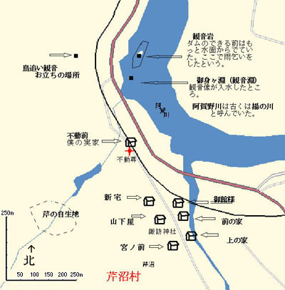 祈りあらたなる霊験も正徳正師の御恵の有難かりし事ともなり。其れ故に、尊像を鳥追えの観世音とは申し也。又、田の在るその所は鳴沢田とぞ名付たり。