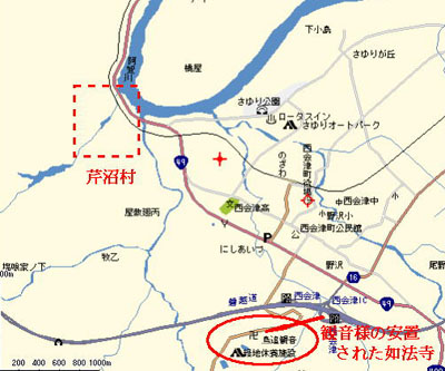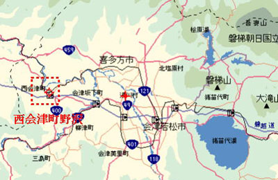 芹沼村 (↑北 ← 新潟方向 会津若松方向 →)