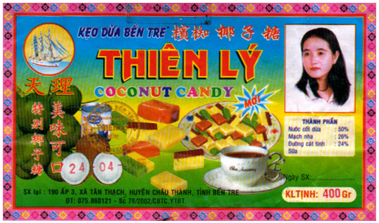 オブラートに包まれたキャンディーの味は、本物のミルク・キャンディーそっくりだが、植物性のあっさりした感じがより滑らかに舌に伝わってくる。口に収まり易いサイズ、パッキング模様となっている。旅の非常食にカロリー価が高いし、宿の個室で口寂しくなった時用に、40個入り一万ドンを一袋買った。その長方形にパッキングされたプラスチックの袋には、彼女の若い頃の写真と原料の椰子とリーチの実に、コーヒー香るコップの図柄を組み合わせた可愛い表紙が挿入されていた。