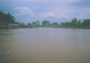 上空は黒い雲に覆われていたが、メコンの河面は明るい茶系統の色を流し続けていた。この河とその水の運ぶ豊かな玄武岩系の土が、メコン・デルタを世界有数の豊かな地域とした。乾季の20倍以上の水量に満たされたモンスーン期のメコン河が、有史以前から繰り返しデルタに水と土を補給し続けてきた。堆積した泥が、湾を陸とした。そして人間は有史以来、運河を建設し続け、この地の豊かさを享受し、その豊かさをめぐって数々の戦争を巻き起こした。