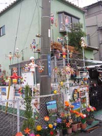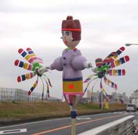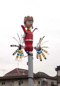 多摩川の川崎側縁・稲田堤でみつけた、風車人形。