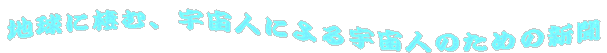 まあそんなに広げなくても、このホームページをのぞき込んだり、また原稿を僕に送ってくるみなさんを周りの人は陰口で「あいつは宇宙人だ」などと言っていまよ。重力に縛られたくそまじめな連中などつまらない。僕らは心は大宇宙を飛行する宇宙人で居りましょう。