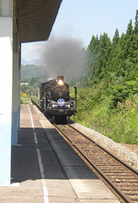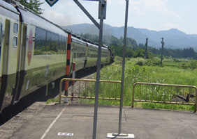 僕の田舎の家のすぐ横を磐越西線が通っている。これは観光用に走っているものですが、4km新潟よりに行った上野尻という駅で撮ったものです。