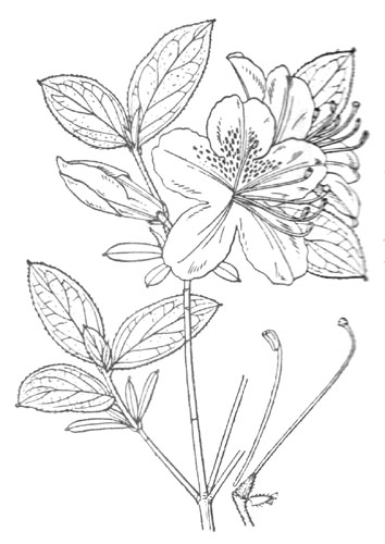 各地の山野に自生する半落葉低木で、高さは約1~3mとなり、枝は分枝多く横に広がる。葉は互生し、枝の先に集ってつき、狭い倒卵形、または倒皮針形で先は鋭形、枝とともに毛がある。初夏、枝の先に有柄の赤色の花を少数散形状に開く。がくは5裂して小形、卵形でふちに毛がある。花冠は漏斗形または漏斗状鐘形で5裂し、上面に濃紅色のはん点がある。雄しべは5本、雌しべは1本。さく果には毛がある。