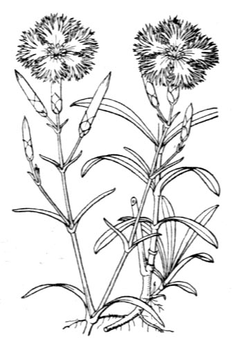 多年生草本でひろく、各地の山野に自生する。茎は数本叢生し、直立して緑色、隆起した節があり、高さは普通50cm内外あるが、稀には1.7m余りに達することもある。葉は対生し、線形あるいは線状皮針形で両端は尖り、基部は相対する葉と短く連合して節を抱き、全縁で緑色あるいは粉緑色で、長さは3~9cmぐらいである。夏から秋にかけて、上方でまばらに枝を分け、優雅で雅味のある淡紅色の花を開く、稀に白色の花もある。がくは細長い円筒形で長さは2~3cmほど、先端は5裂し、裂片は皮針形である。がく筒の基部には普通4~6片の短く広い小包があり、がく筒に密接している。花弁は5個で長い爪部があり、拡大部のふちは深く糸状に分裂し、基部に鬚毛がある。おしぺは10個、花柱は2個。さく果は円柱形で先端は4裂し、宿存するがく筒の中にある。日本の風習として一般に古くから秋の七草の一つに数えられている。