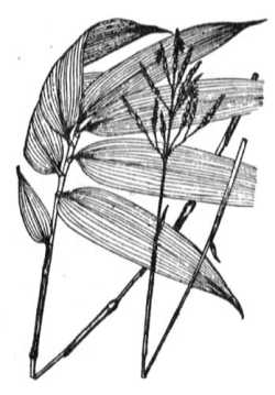 山地の樹蔭に群生する竹である。地下茎は細長く堅く、地中を横に走って繁殖する。稈わらは直立し、高さは Im 内外で細く、分枝することはまれで多くは単一である。 節は著しく膨らみ高い。葉は稈の先端に数個掌状につき、長楕円状皮針形で先は急に鋭く尖り、質は薄く、裏面に細い毛がある。冬期にはクマザサのように葉の縁が白くなる。夏期にときどき開花する。花茎は普通稈の基部から立ち、葉より高くでて小形で短かい円錐花穂をつける。枝は少なく、その先に細長い褐紫色の小穂をつける。小穂は5~6個の花からなり、花は皮針形で尖り8~10mmの長さである。包穎エイ2個で細く小さく、2片は相離れている。護頴は先端尖り、内頴は設顯よりやや知かく背に稜がある。鱗被、花柱おのおの3個、雄しべ6個。頴果は長楕円形で暗紫色。