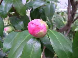 | 寒椿 | 花は小さく八重が多い。1枚ずつ散る。葉は小さい。 |