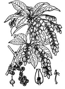 本州、四国、九州の乾燥した山地にはえる常緑低木で、分枝多く、高さは1.5 ~3mになる。新枝は緑色.葉は密に互生し、広倒皮針形で長さ3~8cm、幅1~2 cm,先はとがり、ふちには鈍頭の細かいきょ歯があり、革質で毛はない。早春枝の先に複総状花序を下垂し、多数の白色でつぼ状の花を開く。がくは5裂し、裂片は広皮針形である。花冠は長さ6~8mm、先は短かく5裂する。雄しぺは10本、やくは2本の剌状の突起をもつ。雌しぺは1本。果実は扁球形のさく果となり、径5~6mm,上向に花柄につく。有毒植物で、その葉を煎じ菜園の殺虫剤に用いる。また馬が葉を食ぺると苦しむといい、馬酔木ともいわれる。漢名として梫木を用いるが誤りである。