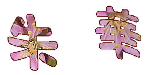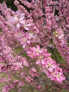 〔日本名〕庭梅という意味.庭園に植え、ウメのような花をっけるからである。小梅はウメに似た低木であるため、ただしシナノウメの一名をコウメともいう。〔漢名〕郁李。1変種にニワザクラ(漢名)多葉郁李がある.葉は細長く、上面にはしわがより、淡紅色あるいは白色の八重咲きの花をつける。 -牧野植物図鑑- |