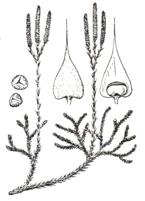 山麓の比較的明るい所にはえる多年生常緑草本。茎は針金状で緑色、長く地上をはい2mにも達し、しばしば分枝して、白色の根を出す。葉は輪生状、またはらせん状に配列して密生し、長さ4~6mm。幅0.5mmの小形の皮針形、または線状皮針形で緑色、硬質で光沢がある。先端は鋭くとがり、長い毛状となる。ふちには微きょ歯があり、顕著な中脈がある。子囊穂は,細茎〔はっている茎から分枝して直立し葉がまばらにつき高さ8~15cm)上に2~4個生ずる。子囊穂は淡黄色、長さ3~4cmの円柱形。広卵形で先端が鋭くとがって長く伸びた胞子葉をらせん配列状に密生する、胞子葉は短柄があり、縁にはわずかにきょ歯がある。その上面基部に大型腎臓形の胞子嚢を生じ、横に裂けて、黄色の胞子を出す。胞子を石松子といい、薬用とする。
