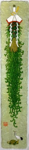 ヒカゲノカズラを鬘にして飾ることは、速須佐之男命の狼藉によって天照大御神が天の岩屋戸に隠れ籠ったとき、天宇受賣命(あめのうずめのみこと)が天の香山のヒカゲノカズラの「日影」を襷にして、ツルマサキの「眞折(まさき)」を鬘に、ササを手にし、神がかりの裸踊りをして天照大御神を誘い出した『古事記』の記事が基になっていると言われる。後に『延喜式』神祇令にも新嘗祭等の祭祀において神聖な草としてヒカゲノカズラの「日影」を鬘につけることになった。