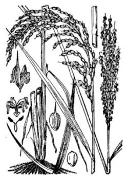 インドマレー辺の原産といわれ、古く日本に伝わった一年草である。株となり、茎は高さ50~100cm、数節があり、葉を互生する。葉は広い線形、先は次第に尖り、長さは30cm、幅は3~5mm、質はやや硬く、表面と縁はざらつき、葉舌は茎円状の皮針形で2裂する。花序は円錐形で、開花時には直立して細いが果時には垂れた「いなぼ」となる。小穂は多数、細長い花序の枝に短かい小柄をもって互生し、1花からなる。包穎2片は退化。護頴と内穎がいわゆる「もみがら」である。護頴は大形の長楕円形、長さは6mm位、左右から扁平のため深い舟形となり、普通全面にあらく短かい毛があり、芒は短かくまたは長く、ときに全く欠く。内頴はやはり舟形で護頴とほぼ同長。雄しべは6本、茎をわらとして用いる。ウルチネ、モチイネの2種があり、また畠に作る品種をオカボという。穂の短かい矮生品(コビトイネ)、全体暗紫色のムラサキイネ等品種が大変多い。