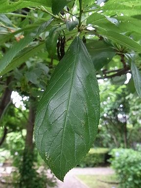 〔日本名〕酸桃の意味で果実は酸味が強いからである。〔漢名〕李。西洋スモモ(P. domestica L.)は、いわゆるプラム(Plum)であり、果実はスモモに似ているが、葉は比較的幅広く、倒卵形であるので、区別できる。 -牧野植物図鑑- |