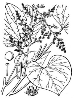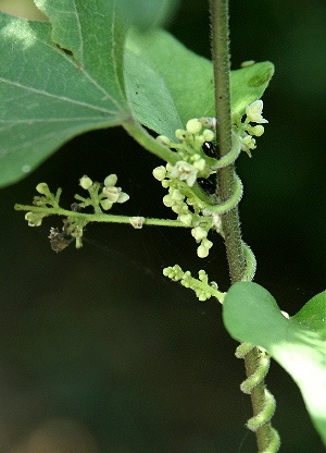 つづらふじ [つづらふじ科] (あおかずら、あおつづら、たのはかずら、おおつづらふじ) Sinomenium diversifolium Diels(=S. acutum Rehd. et Wils.) |