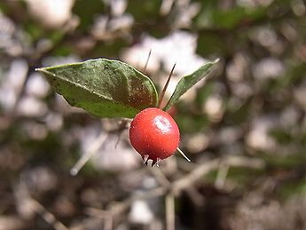 冬の場は広葉樹の葉っぱがなくなり、風景が殺風景になる中、目立つ赤は貴重で、縁起物として大切にされてきました。 (ま)