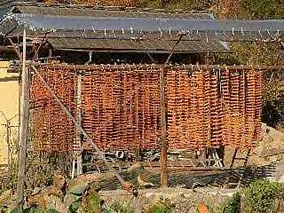 僕の田舎の会津では、甘柿より渋柿のほうが多いぐらいある。これは仕方ない、柿は南方系の植物だから南のほうが甘柿が多いのです。でも、東京にはあまり出回っていないが、「実知らず」という渋柿は富有柿のようにふっくらとして大きく、これを焼酎で渋抜きするととてもおいしんです。また、吊るし柿を天ぷらにして食べるのです。天ぷらの衣で甘味が緩和され、おいしいんです、塩をかけたり醤油をかけたりしてね。柿で甘味を付けた沢庵もいい。