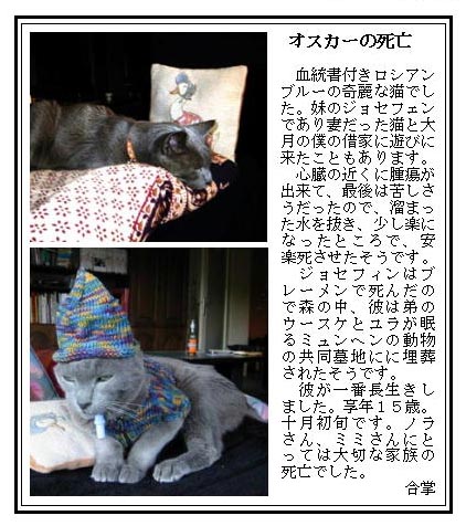 九月下旬にAOLから十月一杯で、ホームページサービス閉鎖のの通知。慌ててドメイン収得の手続き。1GB(ギガバイト)と言うスペースを契約しました。桁違いに広くなったので、入る入る。今までのものの他に、全部のバックナンバー入れても1/3程度。みんなの個別のコーナーを作ろうと、夜鍋仕事を続けてしまった。お陰で、皆さんに感謝のメールをいただいた。ここで作業はいったん中止。