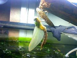 むとう君こんばんは こう不景気では らんらん記者のむとう君にはお金も無く取材にでれない そんな訳で 安さんが見つけたここ一番のショット ご覧の通り トンボくんの孵化の現場に立ち会いました