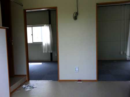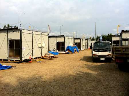 仮設住宅の現場、金は掛けていないが室内はコンパクトにまとめられている。