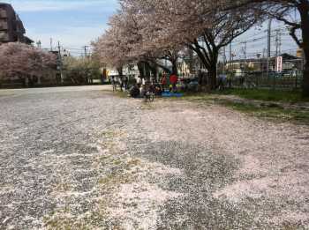 今年は開花が遅れたが、開花してから温度の高い日が続いたので、花吹雪の中のお花見でした。