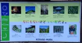「なにもないけどいい村だよ。」の看板、素直で良い看板です。 自然という宝物の中にある村ですけど。