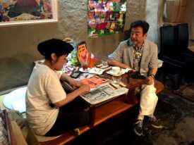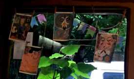 6/5、「飾り付けが上手く行かない、助けて〜〜〜!」とメールが入った。国立のエマさんのカレー屋さんと三軒長屋のお店が共同で企画を作り、メグラ画伯の絵をレラに飾る事になったのである。