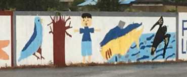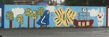 福生の空き地に描かれた子供たちの絵