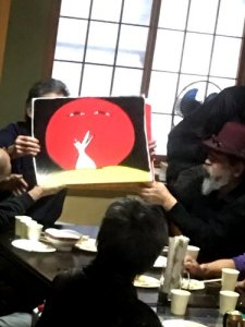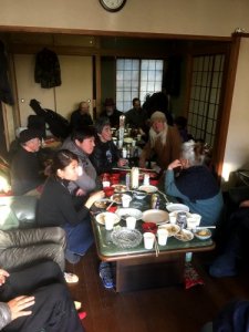 毎年恒例のカニザカフェスタの餅つきと忘年会。ここで僕のそばも恒例になりました。宴会終盤、突然紙芝居が始まった。まだそば打ちが残っているので、僕は早めに退散。