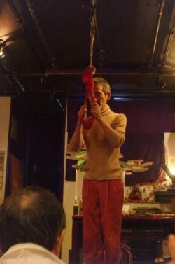 70歳、確かに若い死です。過激なパーマンスなど考えた時、ある意味では納得行く年齢の死です。首吊りという行為そのものはそんなに身体に負担にはなりません。問題は精神的な部分、人を驚かせる言葉使っている。という部分です。心で「過激さ」を引き受けてている。この精神的重みは、結果的には、より多くの負担を強いる事になるからです。
