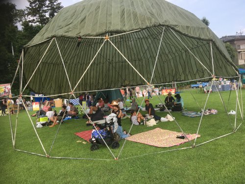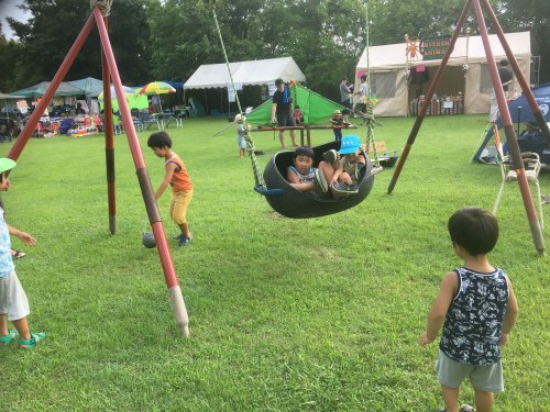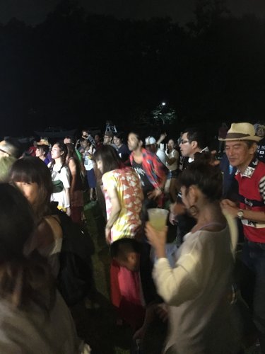 今年のカニ坂は、雨も降らず楽しく終えることができました。芝生の上で開放的なのが一番いいですね。子供たちが飛び回っています。涼しくなる夕方から夜が最高です。