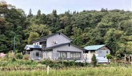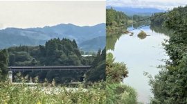 実家から見える阿賀野川。右が新潟方向、晴れていれば山の家に飯豊連峰が聳える。左は上流、会津若松方向。
