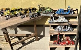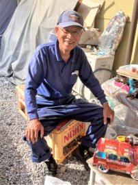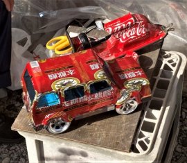 4/11 日の出で空き缶を、風車ではなく、飛行機や車に改造している人が居た。