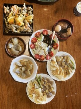 筍、山ウド、こんにゃくのお刺身。天ぷら。おでん。サラダ。僕は胃を手術していて、強い消化液は出ません。胃が許すのは、野菜中心の健康食です。