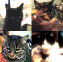 こいつらなかなか野性的で、戸棚の戸は開けるし、引き出しも開ける。魚や餌の置場所に困り、天上からさげたら2メートルぐらいなら飛びつく。魚を焼いたら猫にとられず食べるのが至難の業、何せ一対四のバトルですから。今まで何枚皿を割られたことか。外から家に入ってきて餌をあさるのまではいいのだが、その都度皿を割るので仕方なしに餌づけしたのです。餌が少ないとすぐ御乱行が始まるので困ったことだ。僕が猫嫌いじゃないのがもっと困ったことなのだが。