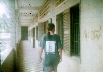 トゥルスレングP21。首都プノンペン市の閑静な住宅街に、虐殺記念博物館として公開されている、クメール・ルージュ・ポルポト派が政治犯を収容した二階建の元学校校舎。その5メートルはある2重の塀の間には重複して張りめぐらされた、かっては高圧電流の流れていた鉄条網。さびても怨念生々しい頑強な鉄の足かせ。1万5千人の政治犯の内奇跡的に生還した7人の一人が描いた身の毛もよだつ拷問方法の数々。そして何よりも耐え難く忘れ去ることのできないのは、構内のパネルにえんえんと貼られた政治犯の上半身写真だ。