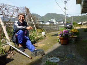 アパート住民に話すと、上階のブルトーザーの運転手が整地をする時出た大きな石を三十個ほど持ち込んでくれた。僕一人では重過ぎる大石を、たまたま立ち寄ったバックパッカーや市内に住む外国人達が並べてくれた。今回は脇と前に立つブロック塀に沿って細長い十畳ほどの石庭風箱庭となりました。近くの露天風呂で知り合った九十歳の老人が、自分の山から自分で運転して土をどっさり持ってきてくれた。農家出身のアパート住民は、コンポスト肥料から芽を出したカボチャとゴーヤ用の棚をブロック塀に設置してくれた。僕が旅に出ている間に水やりをしてやる、と住民の一人は申し出てくれた。長州人の瞬発性チームワークです。