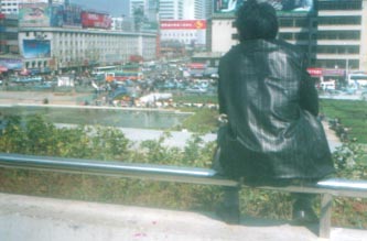 05年4月 昆明から成都へ 首都裏道の路上生活者か? 昆明駅に近いビジネス街で出会った「先住民の路上生活者らしき中年の女性」。あまりの迫力であたりの中国人も僕らも、正面から見ることが出来なかった。 |