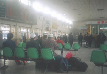 開封市 さらば開封。僕は首都北京に行く。バス停には首都行きさえも便が極めて少ない。 |