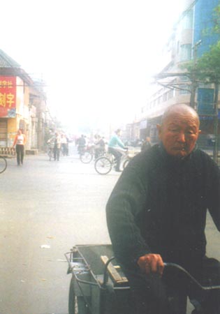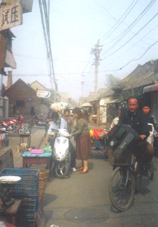 開封市 ホコリ、ドブ、そしてどこもゴミゴミ。ゆっくりと日常が送られている。食糧生産地だから大ビン一本一元(13円)のビールまで格安である。 |