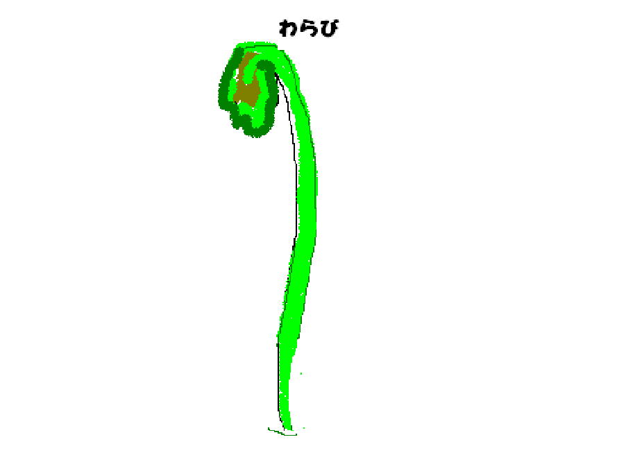 山桜を眺めながらの帰途、ふと左側を見るとあれは「ワラビ」ではないか。そうだよ、「ワラビ」だよ。この山は入ったことなかったけど、ちょっと行ってみるか。「ワラビ」は日当たりのいい斜面に一本ずつすっくすっくと生えて 穂先でこんにちはをしている。